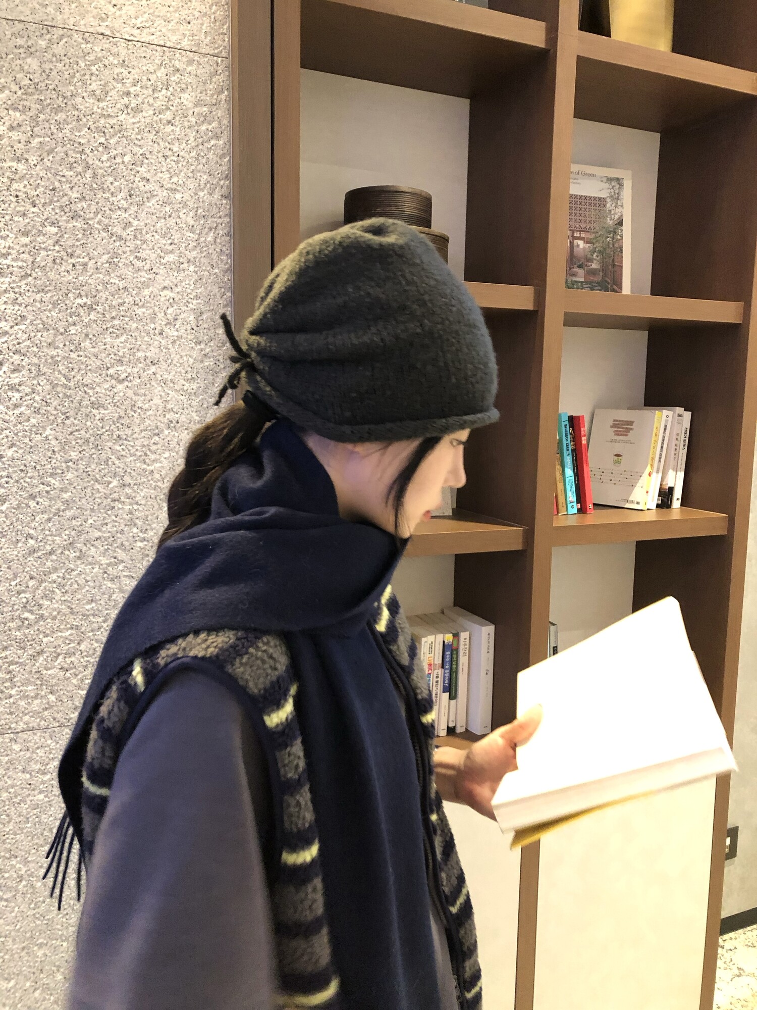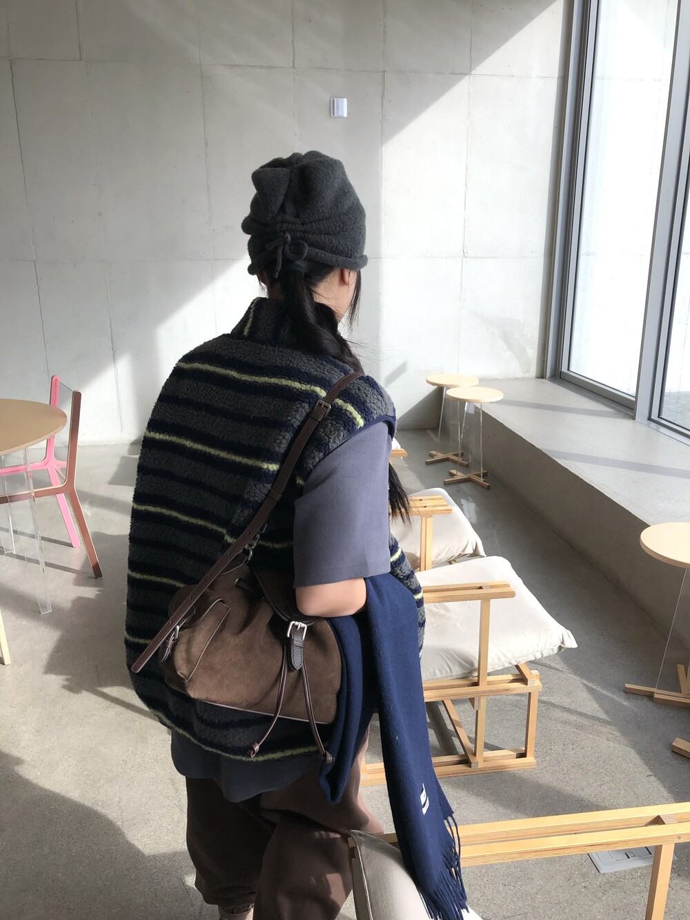셔링 조절 가능하며 머리를 작아보이게 만들어주는 비니로 적극 추천드려요.