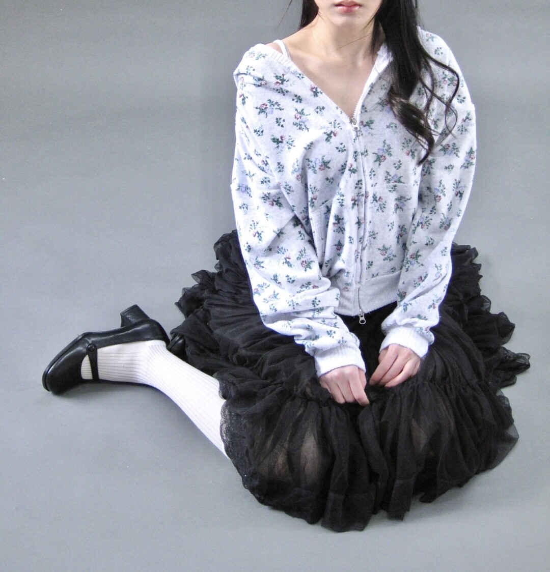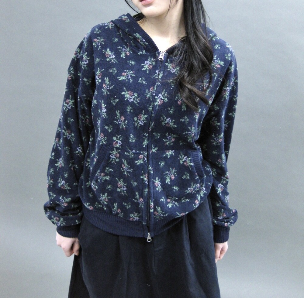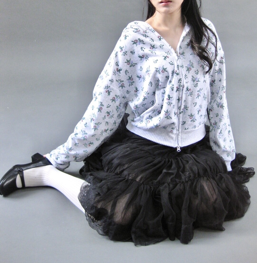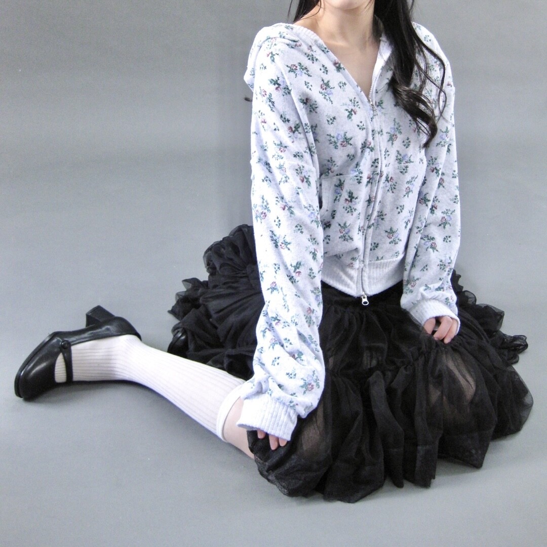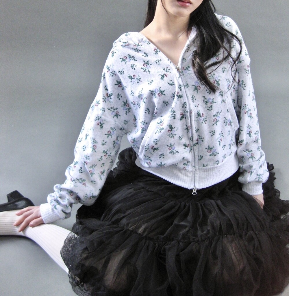 Flower terry crop zip-up-2color
