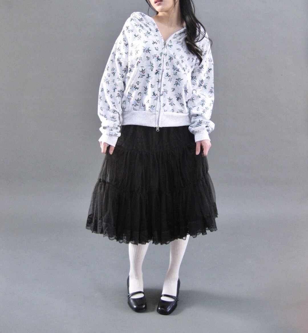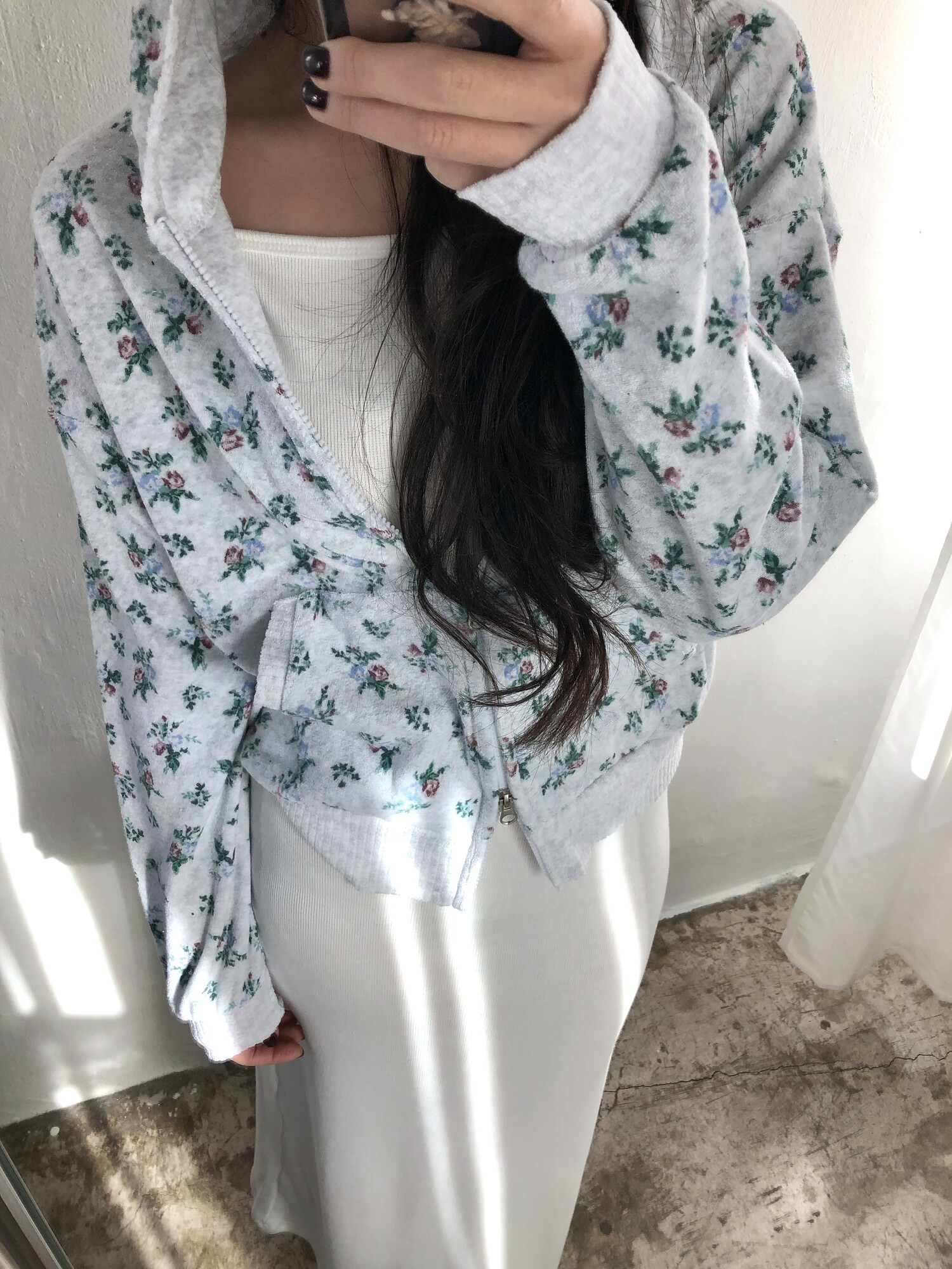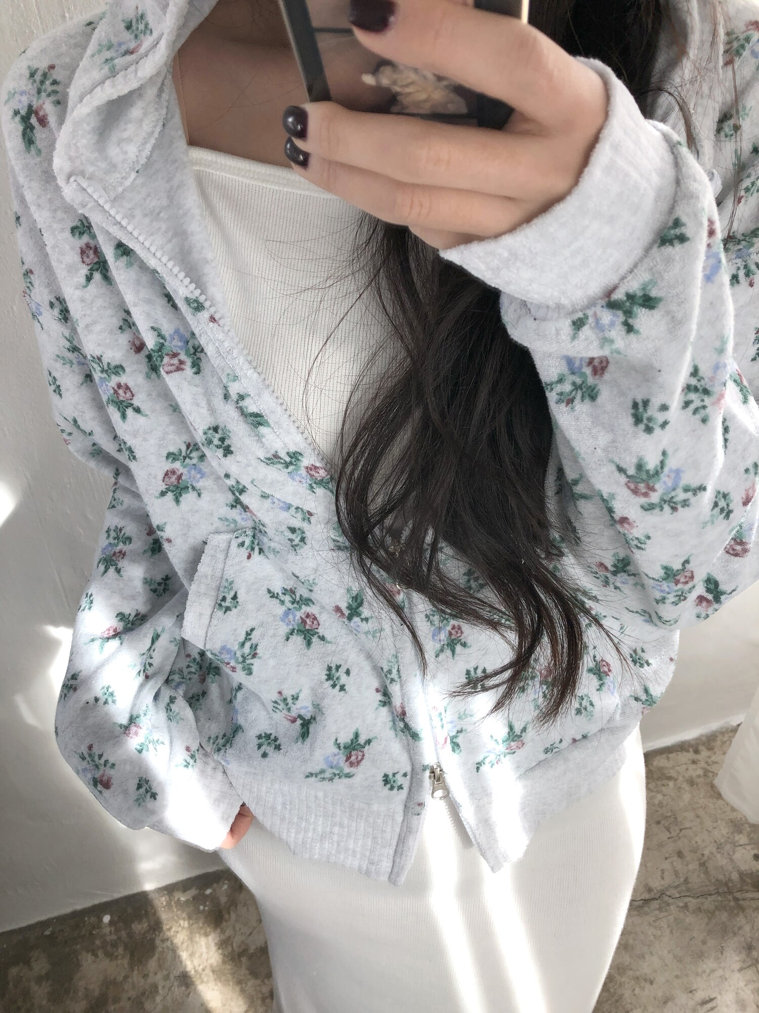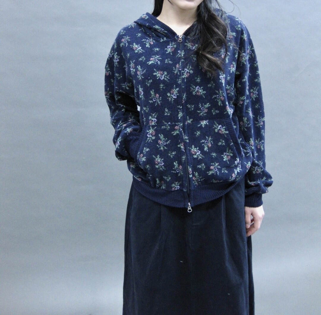 Flower terry crop zip-up-2color