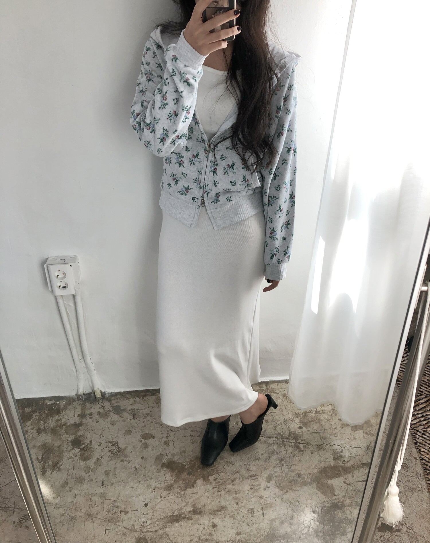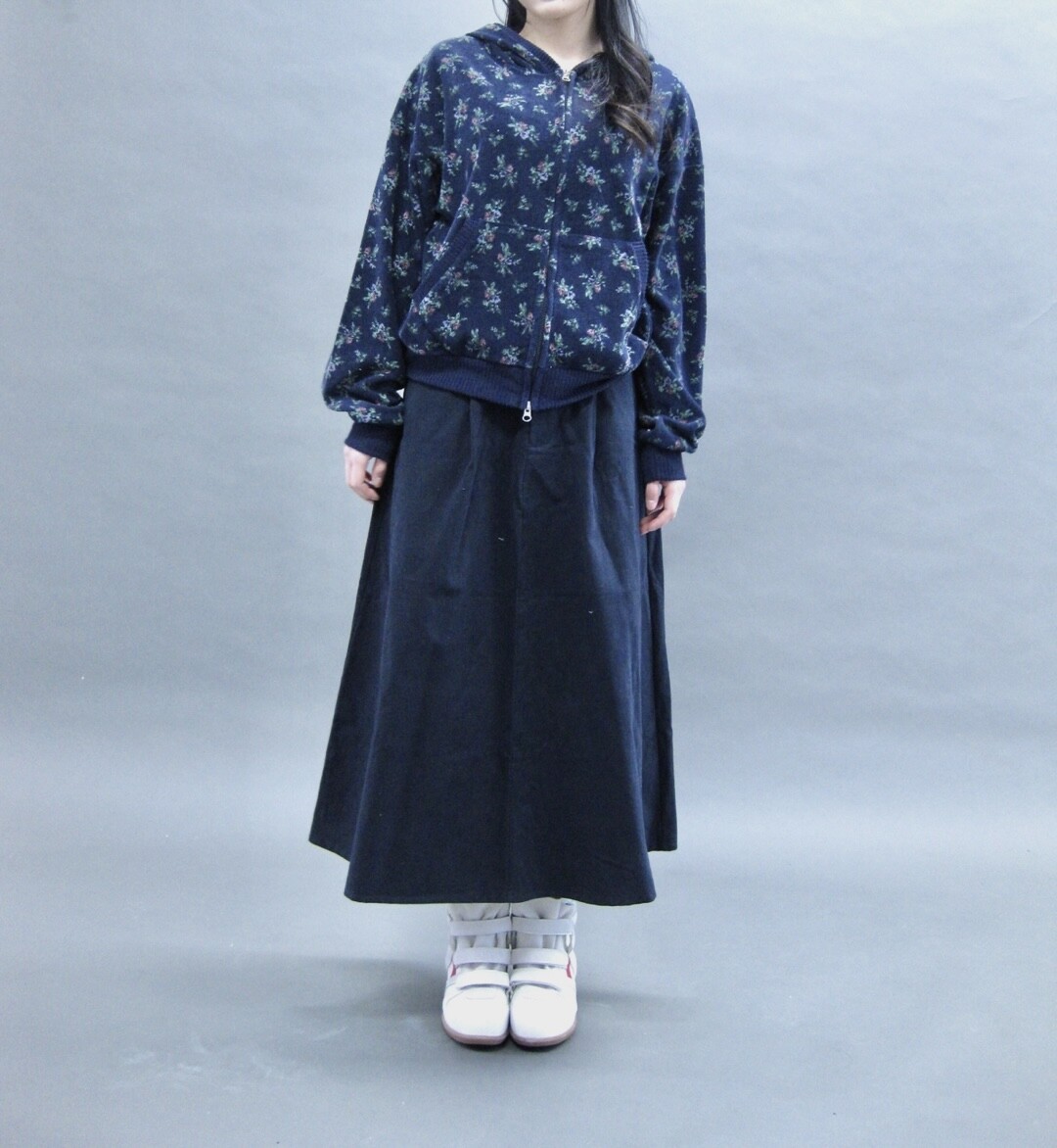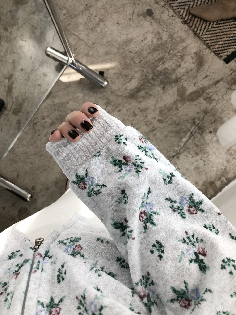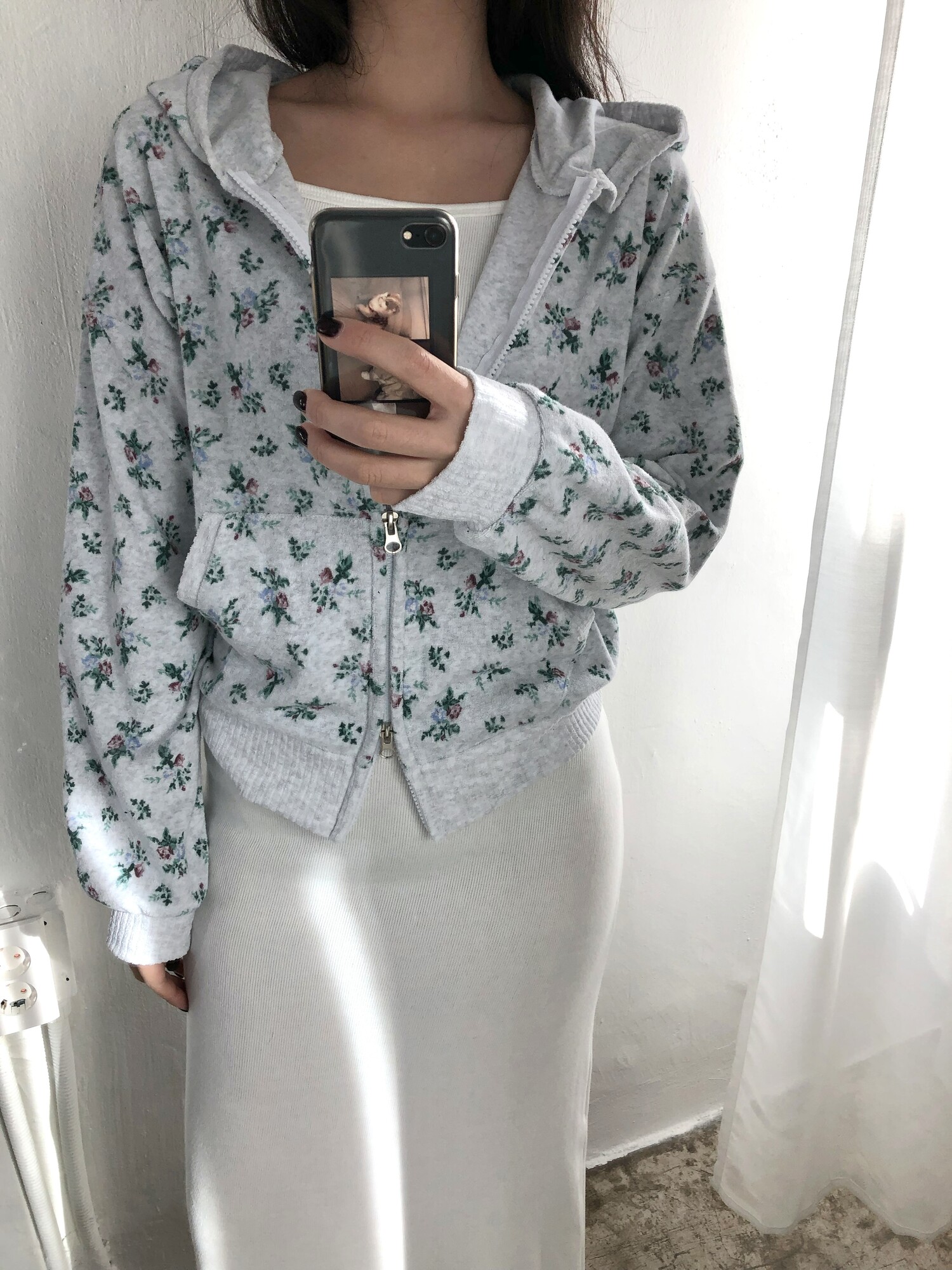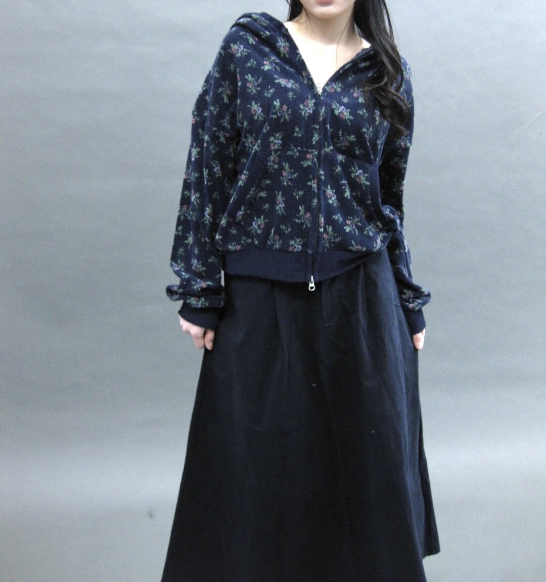 Flower terry crop zip-up-2color