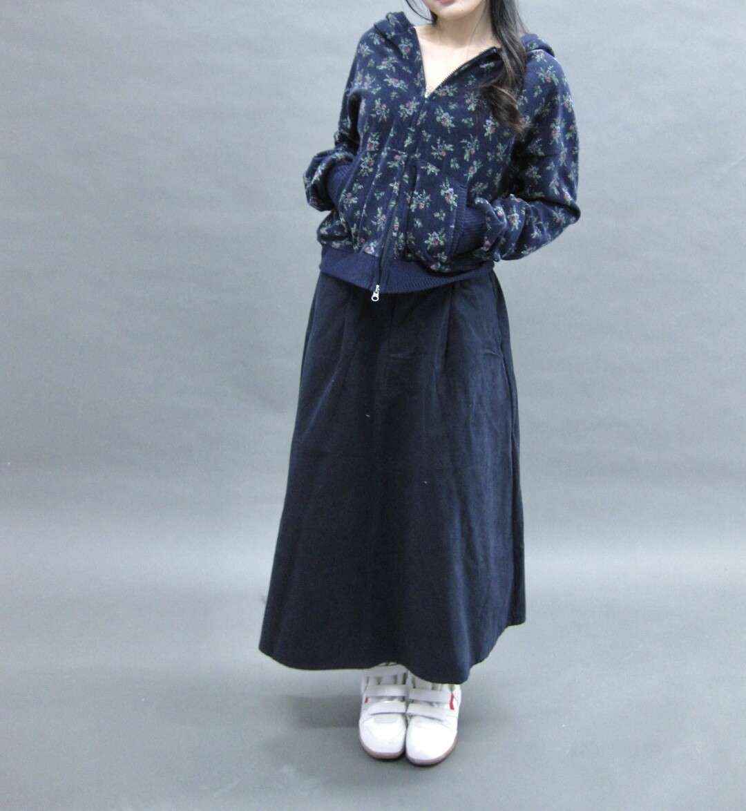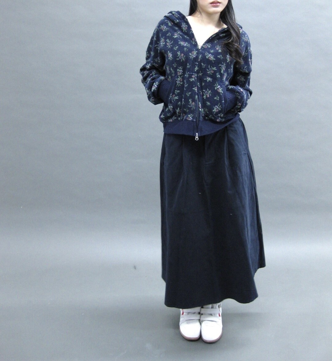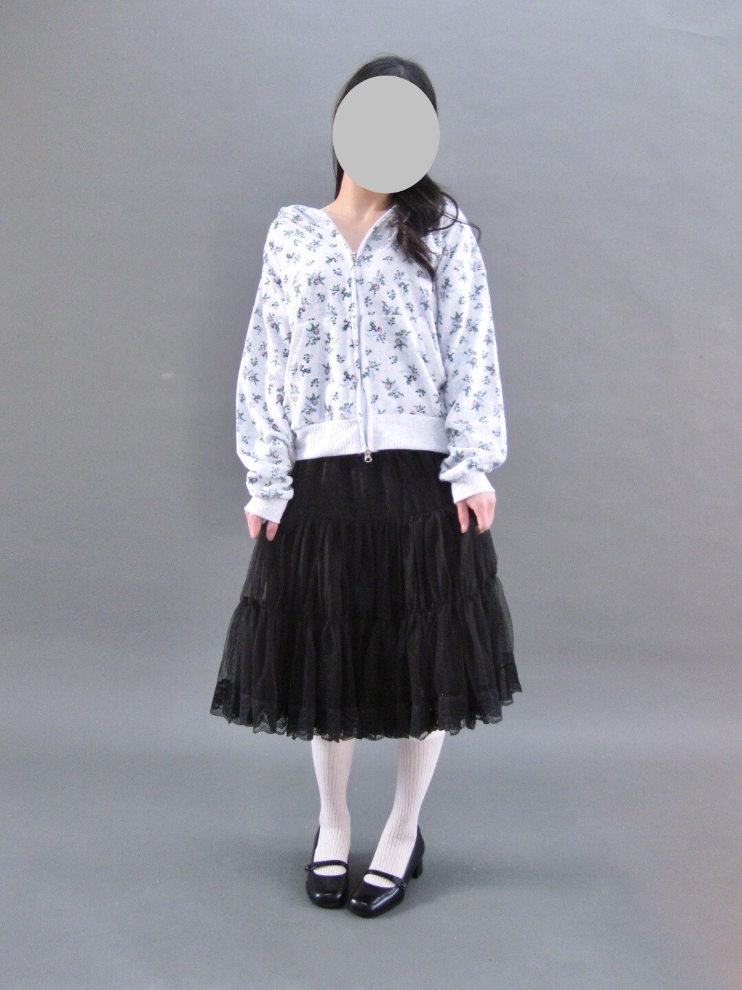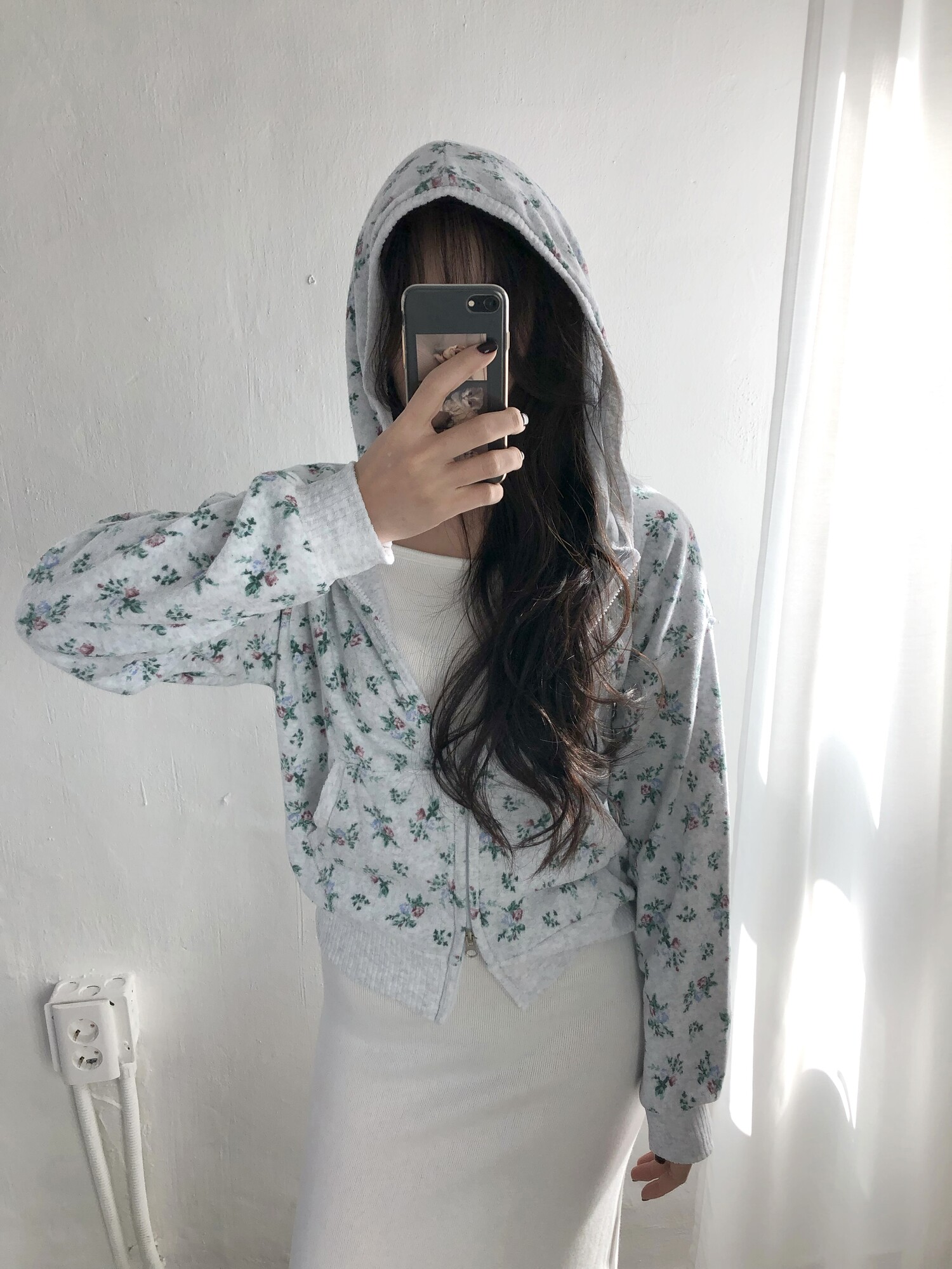 Flower terry crop zip-up-2color