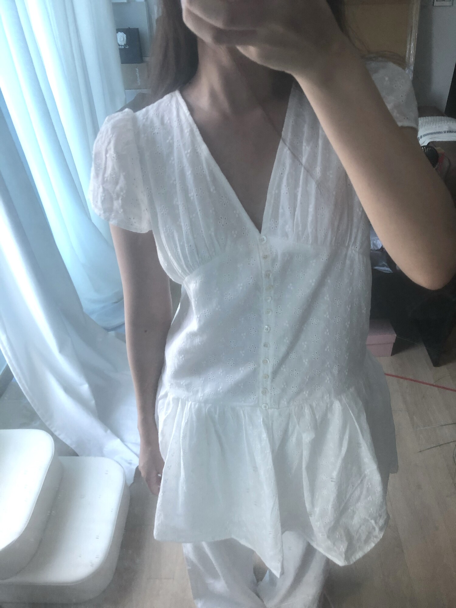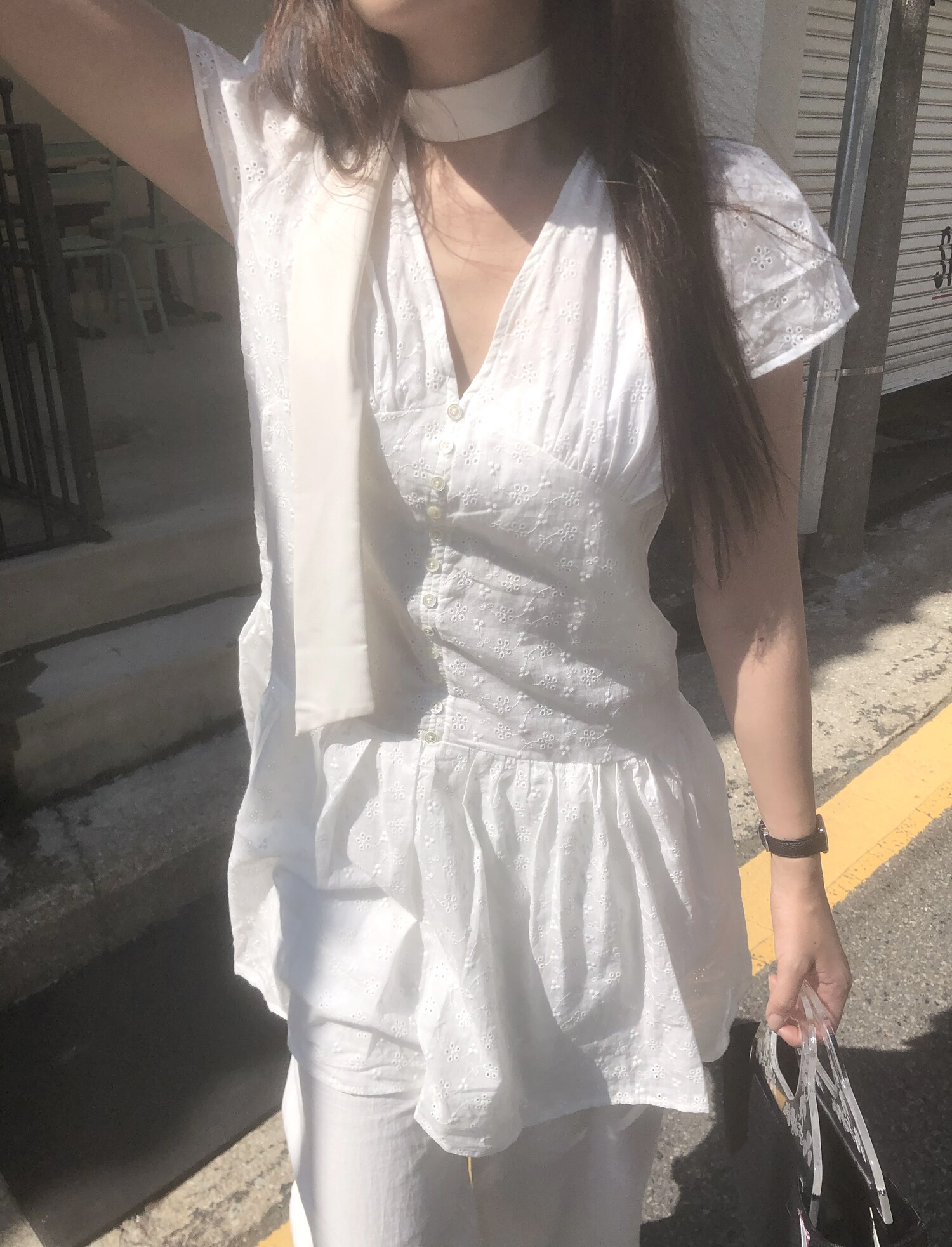 어깨32/암홀21/가슴단면45/힙47/밑단85/총장83