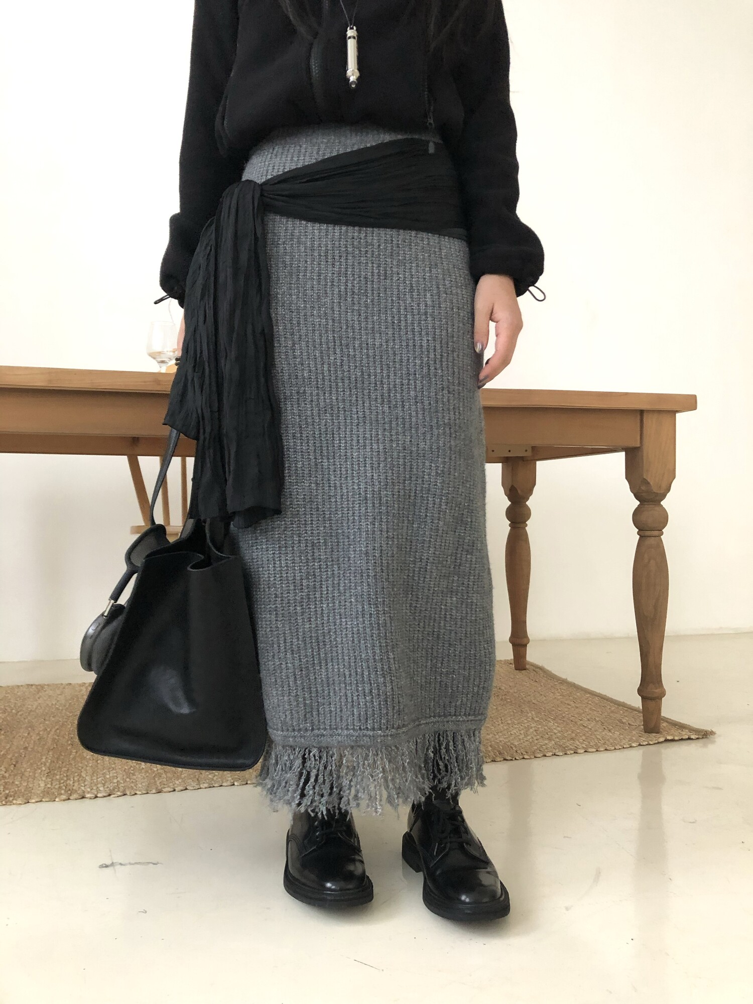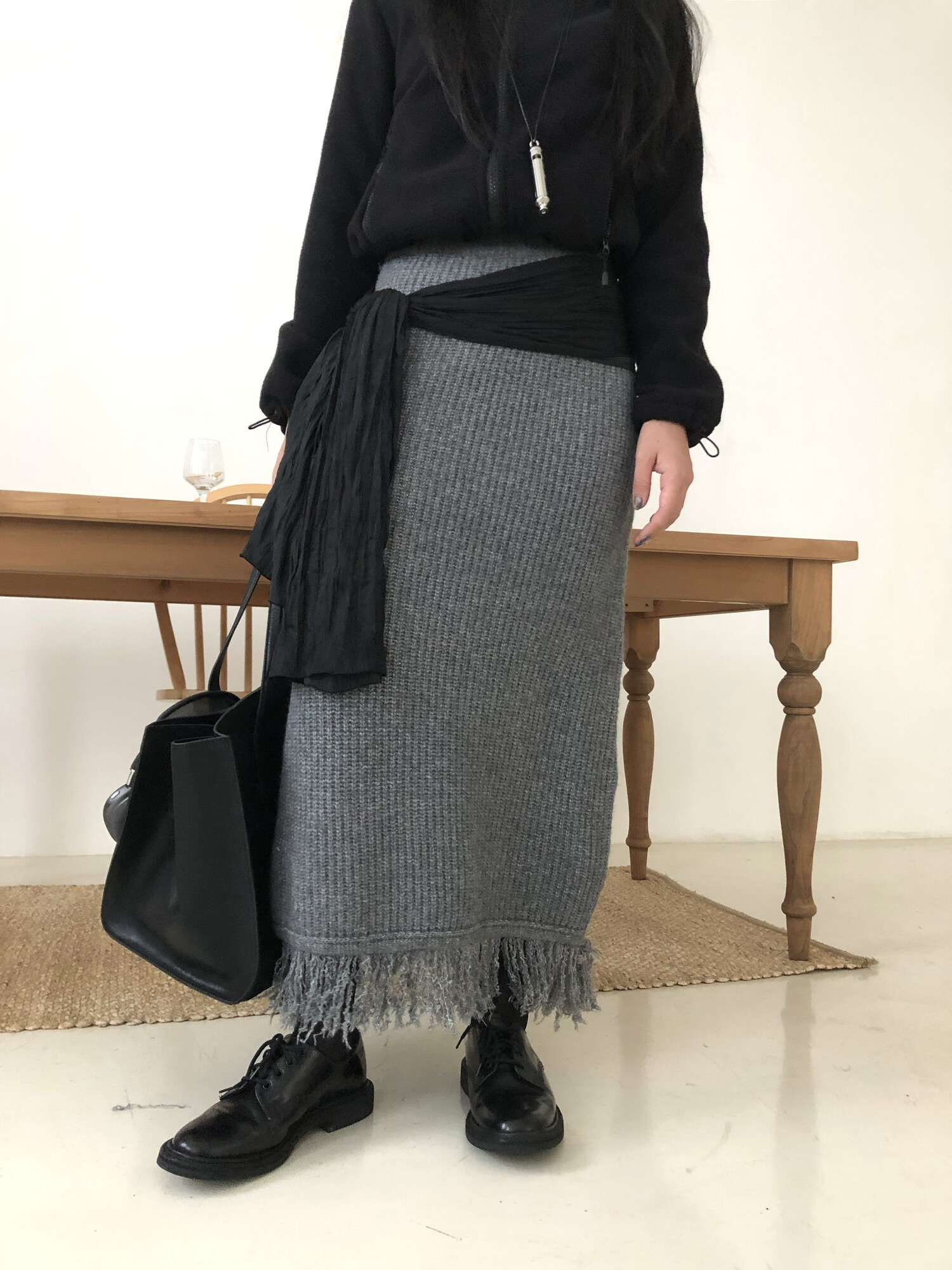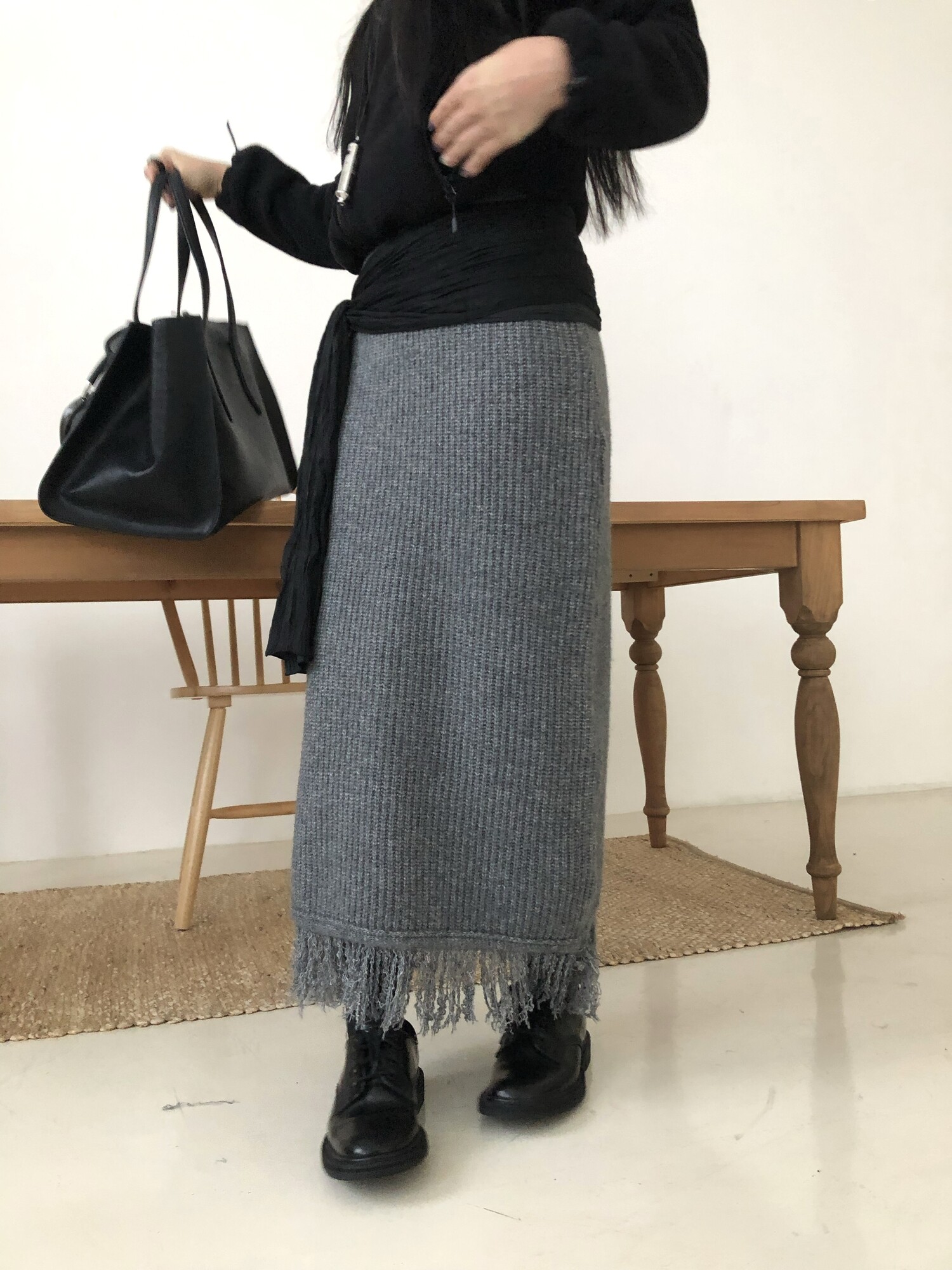 Tassel knit long sk-2color