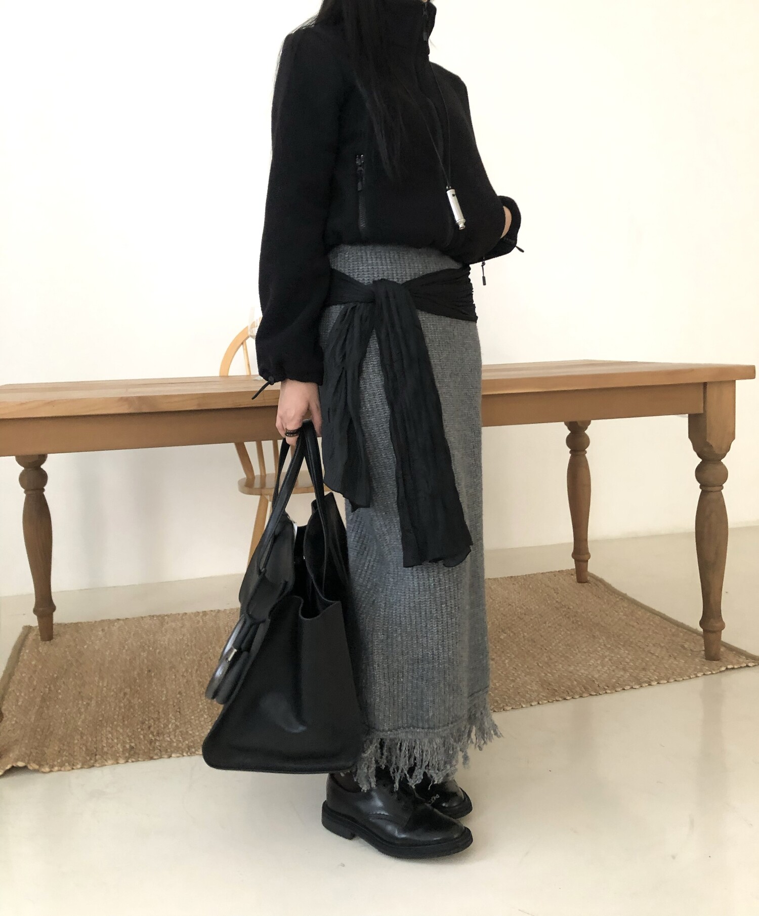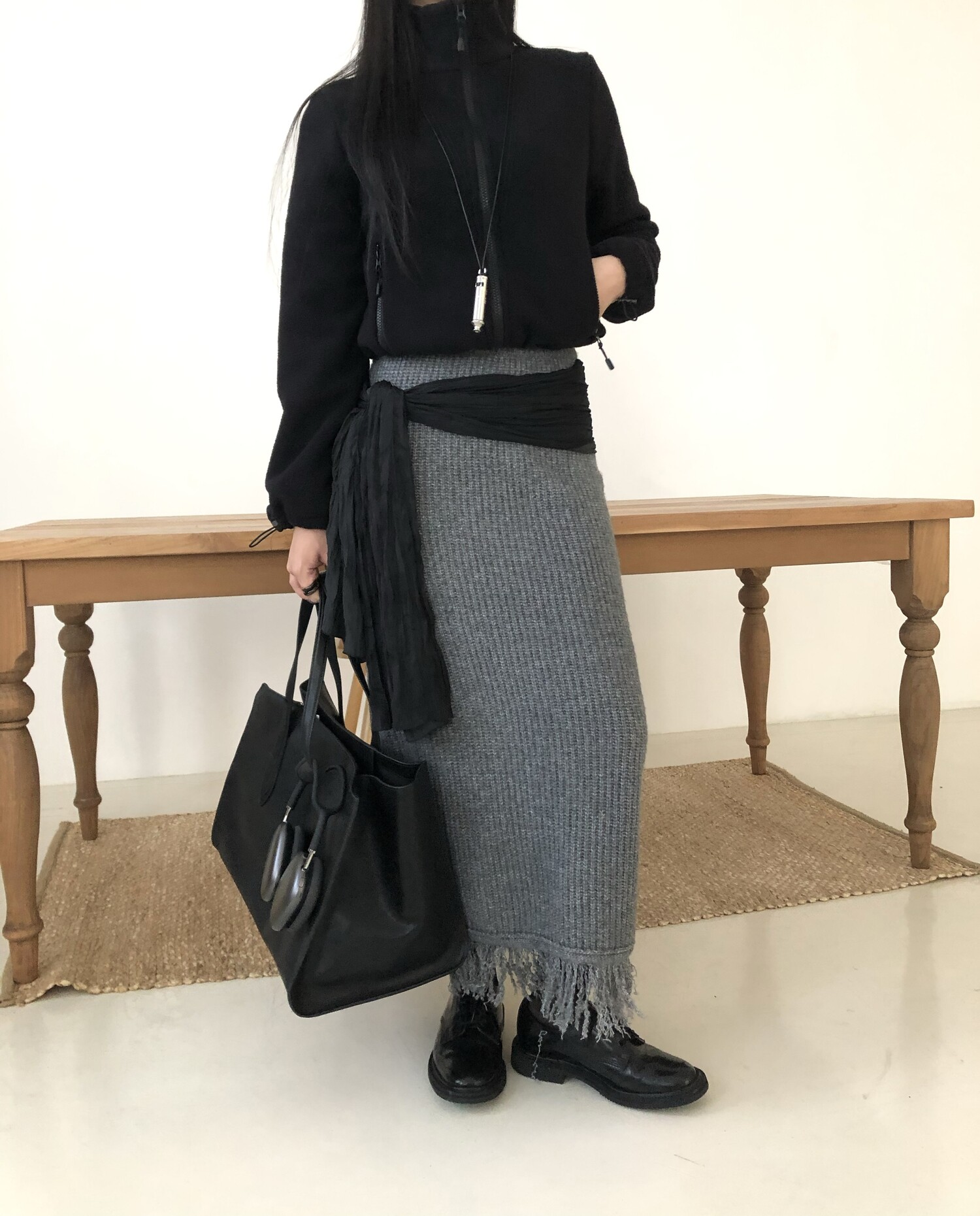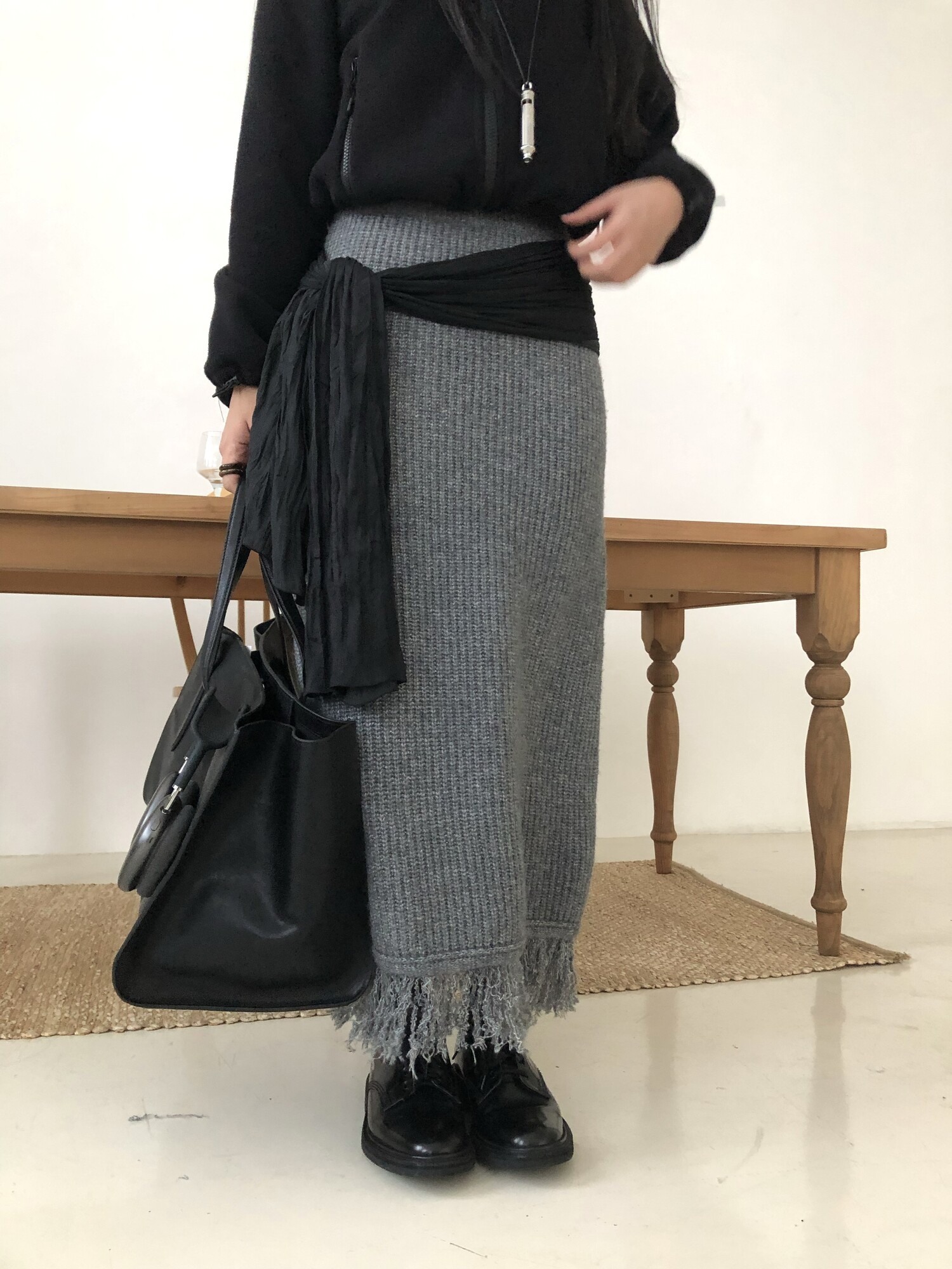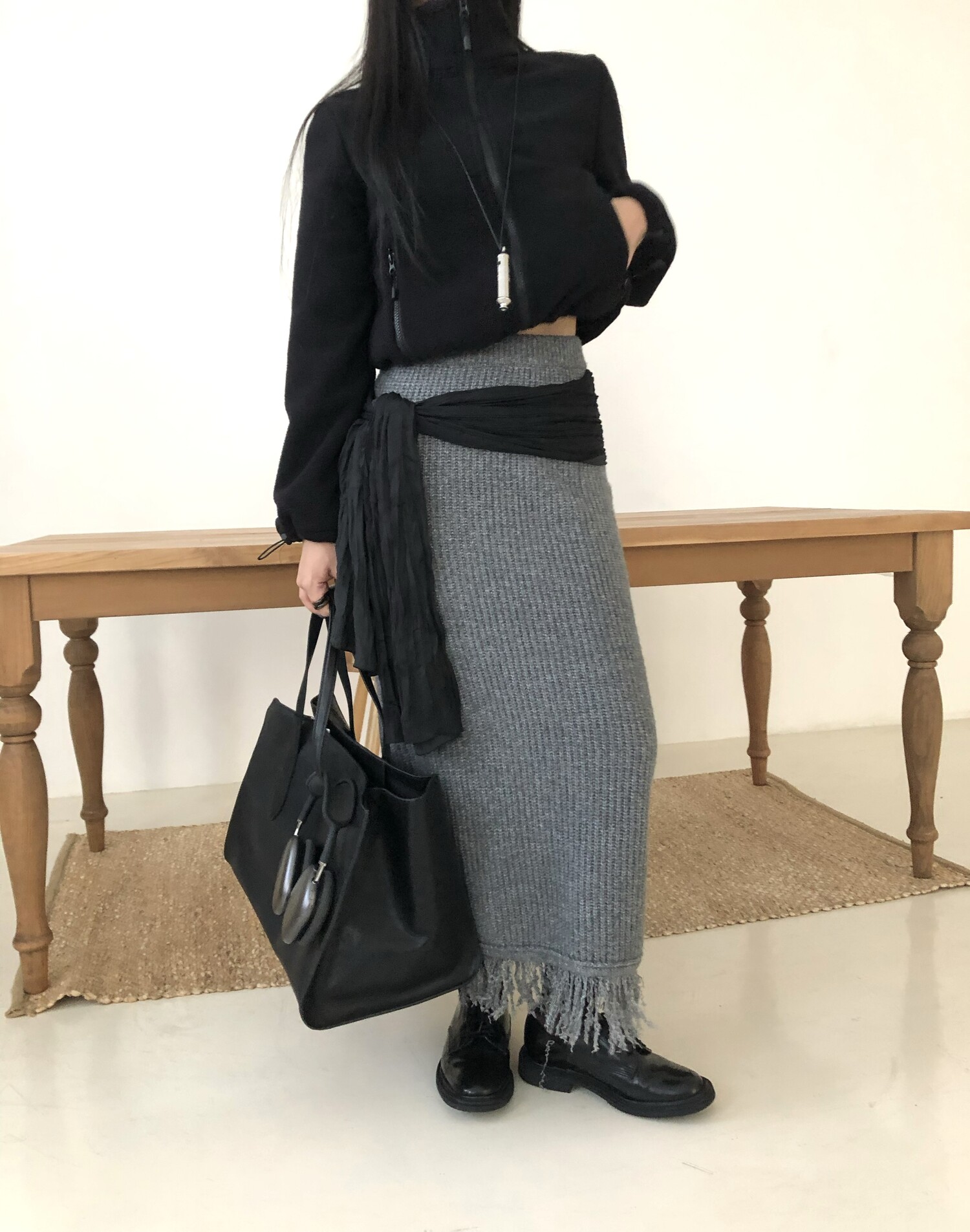 Tassel knit long sk-2color