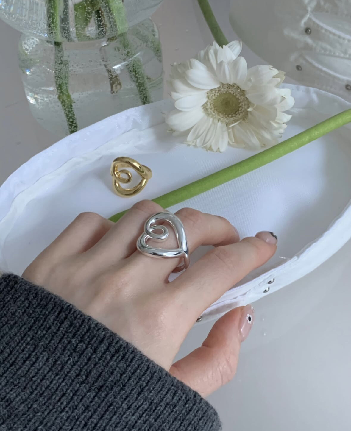 Point heart ring-2color