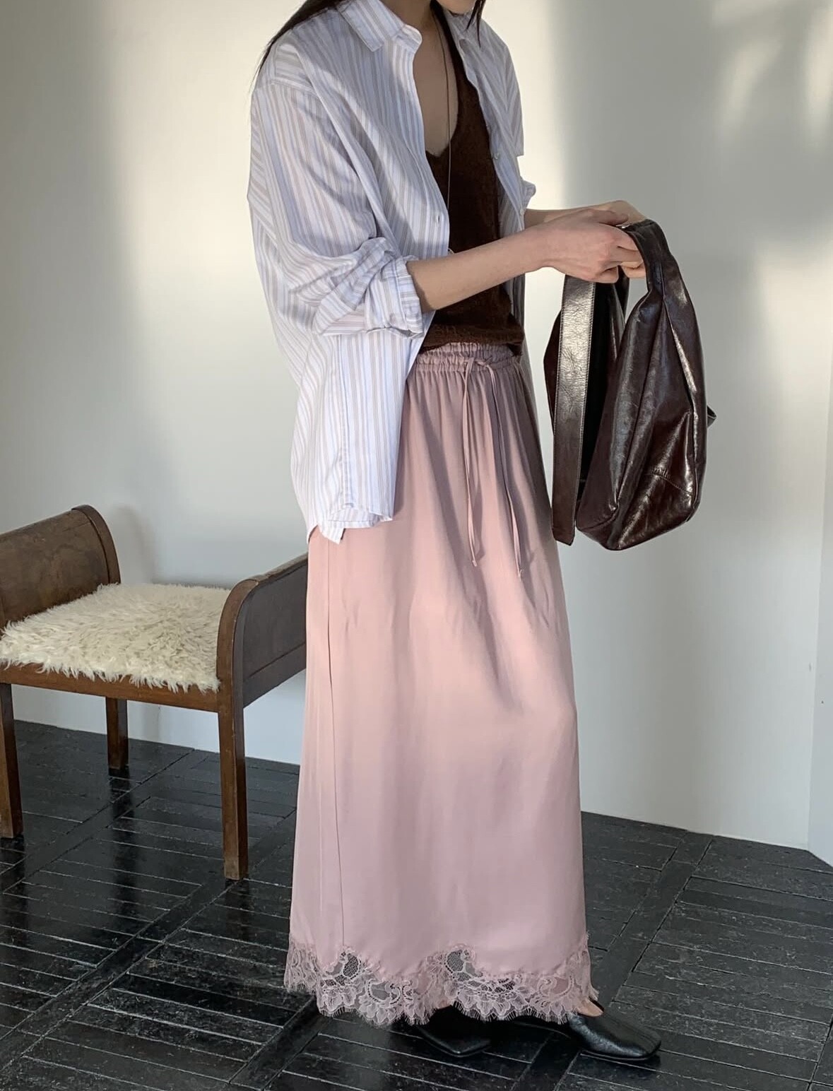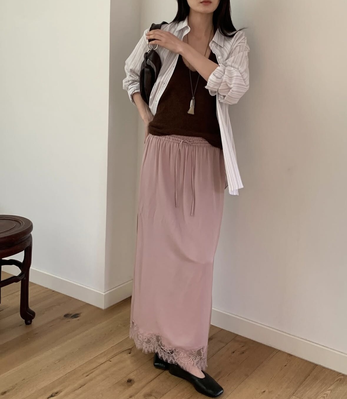 pink 착용-채도와 명도가 낮은 차분한 컬러감의 핑크입니다.