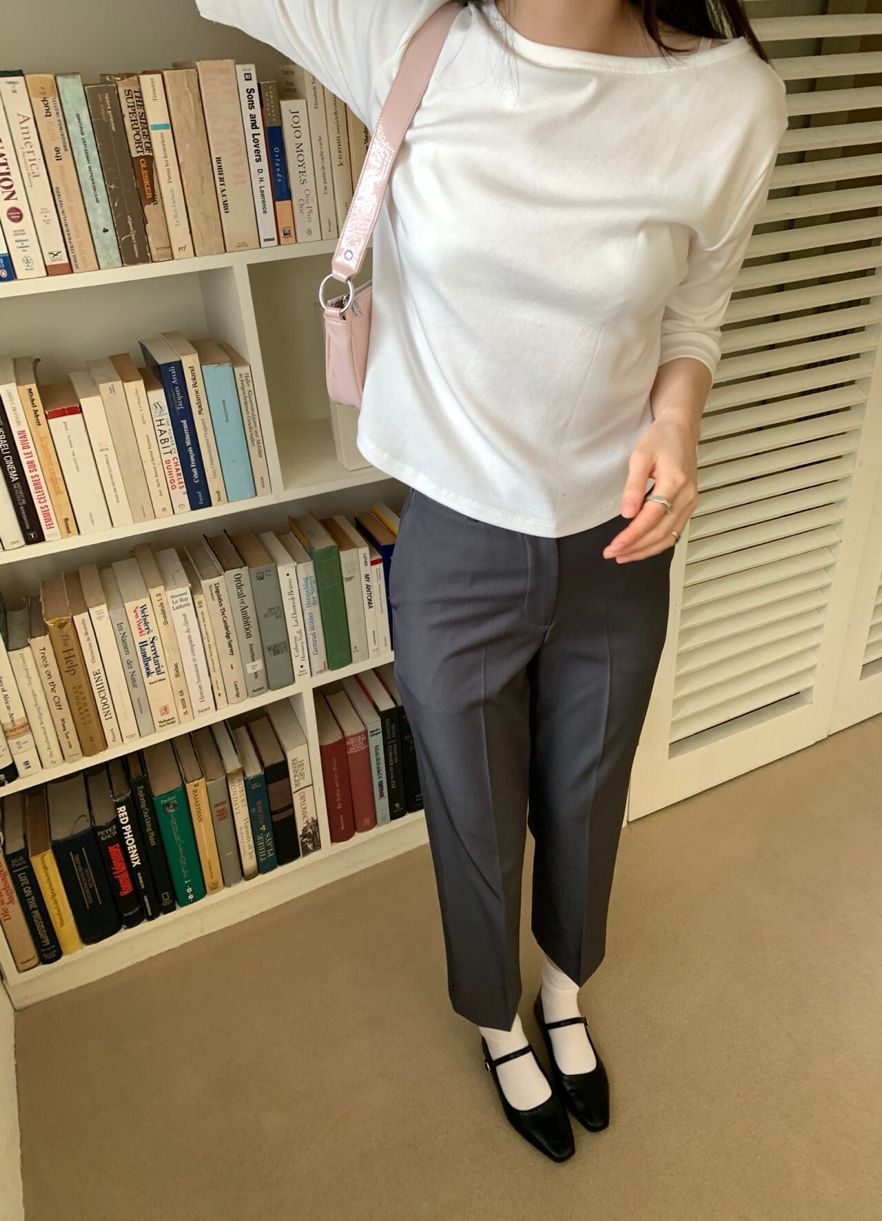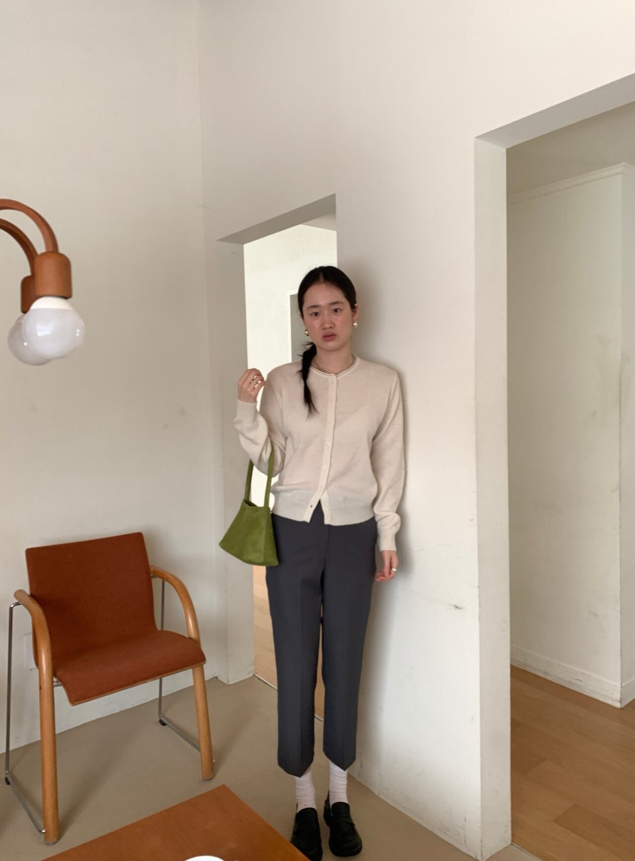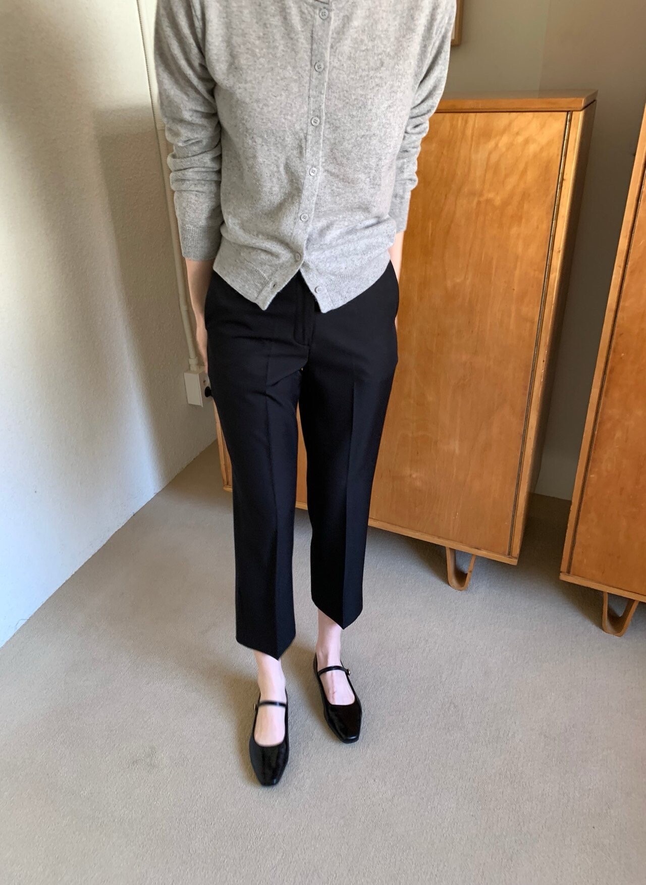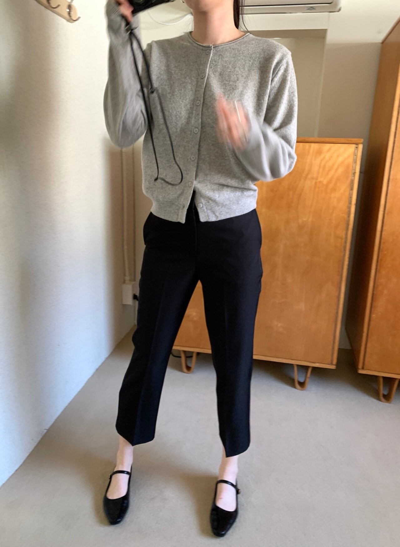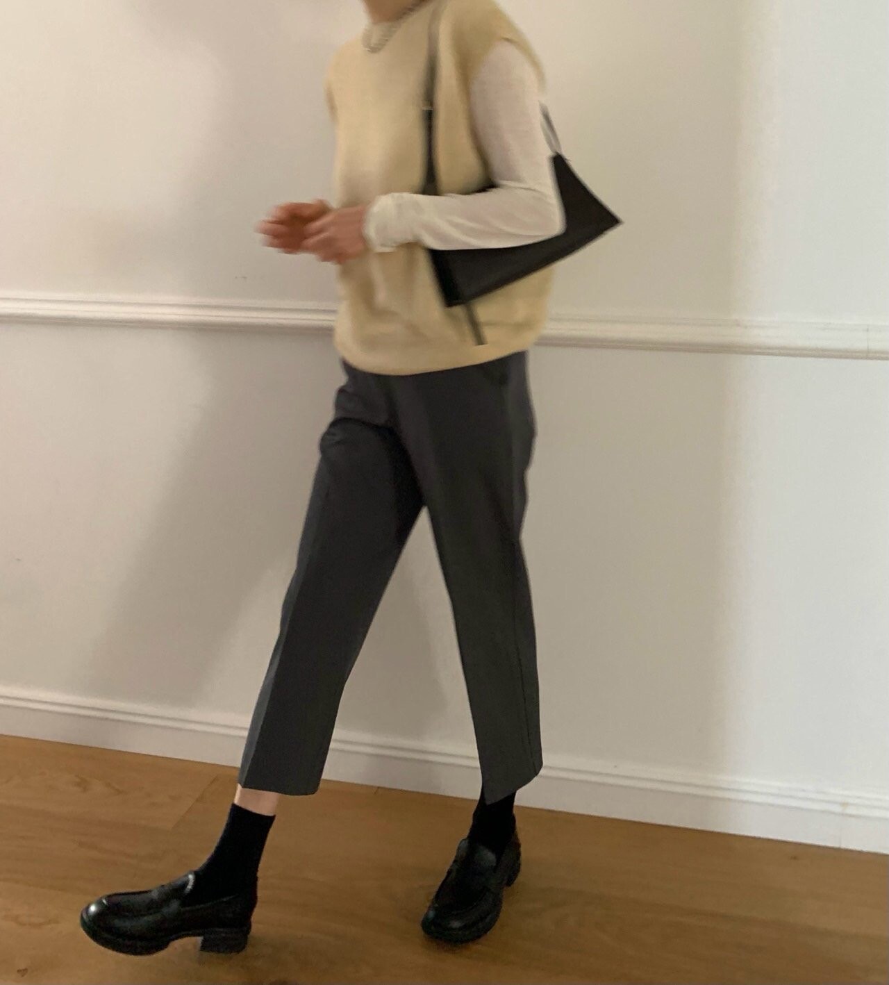 -툭 떨어지는 슬랙스 원단으로 붙지 않고 슬림한 핏 연출