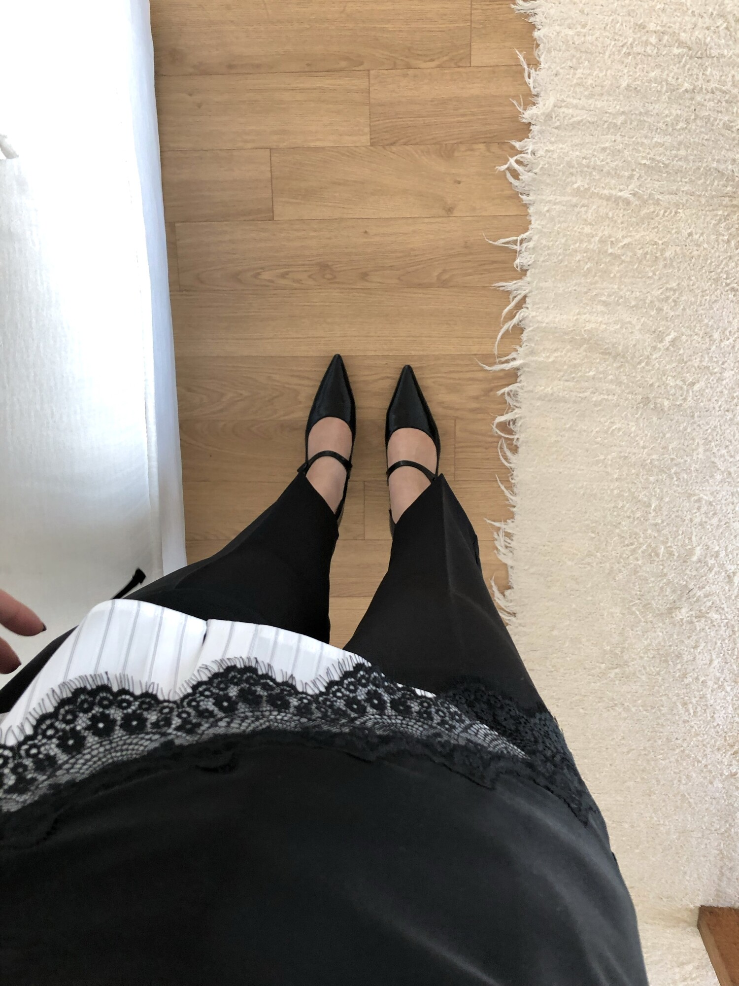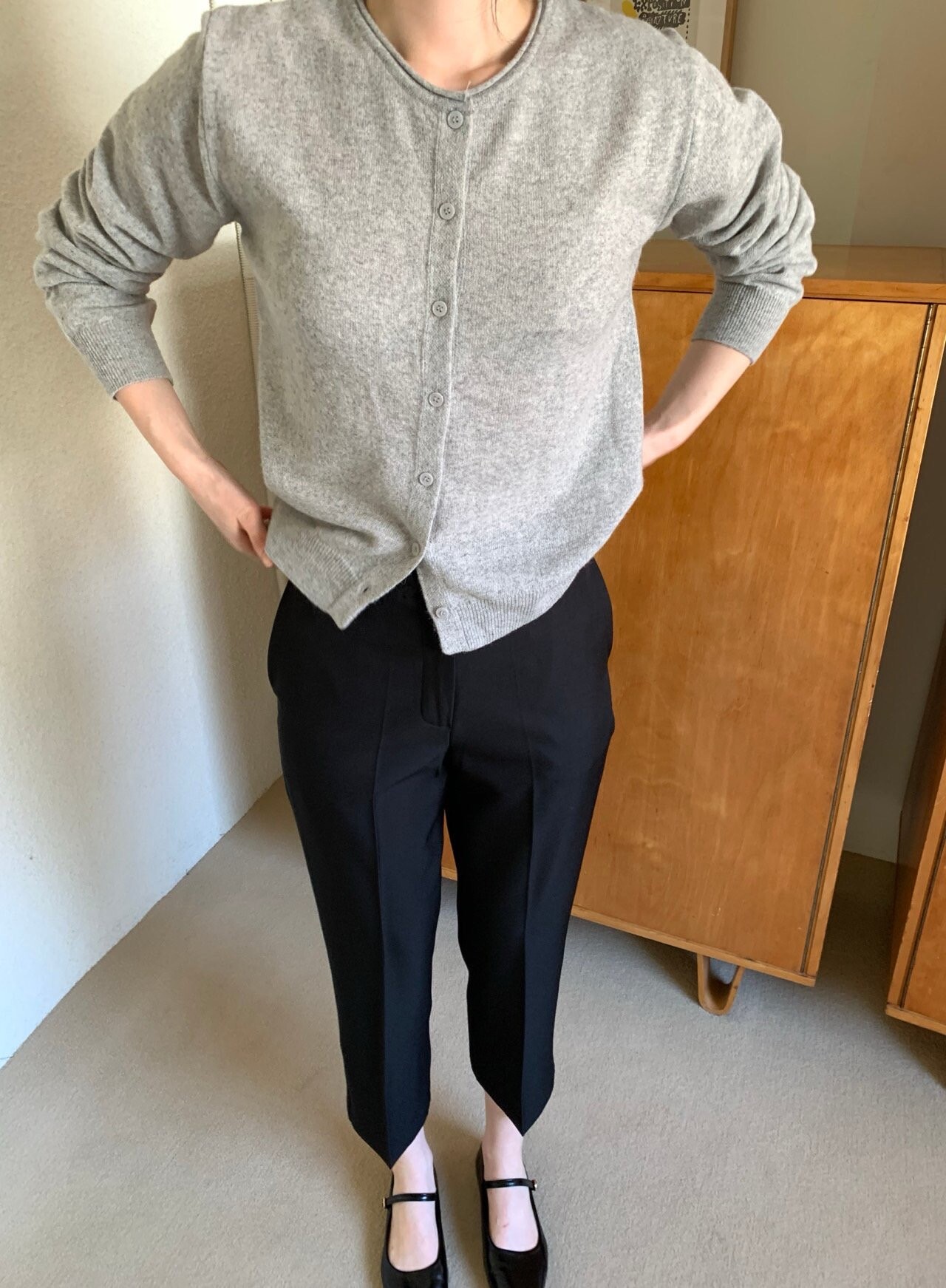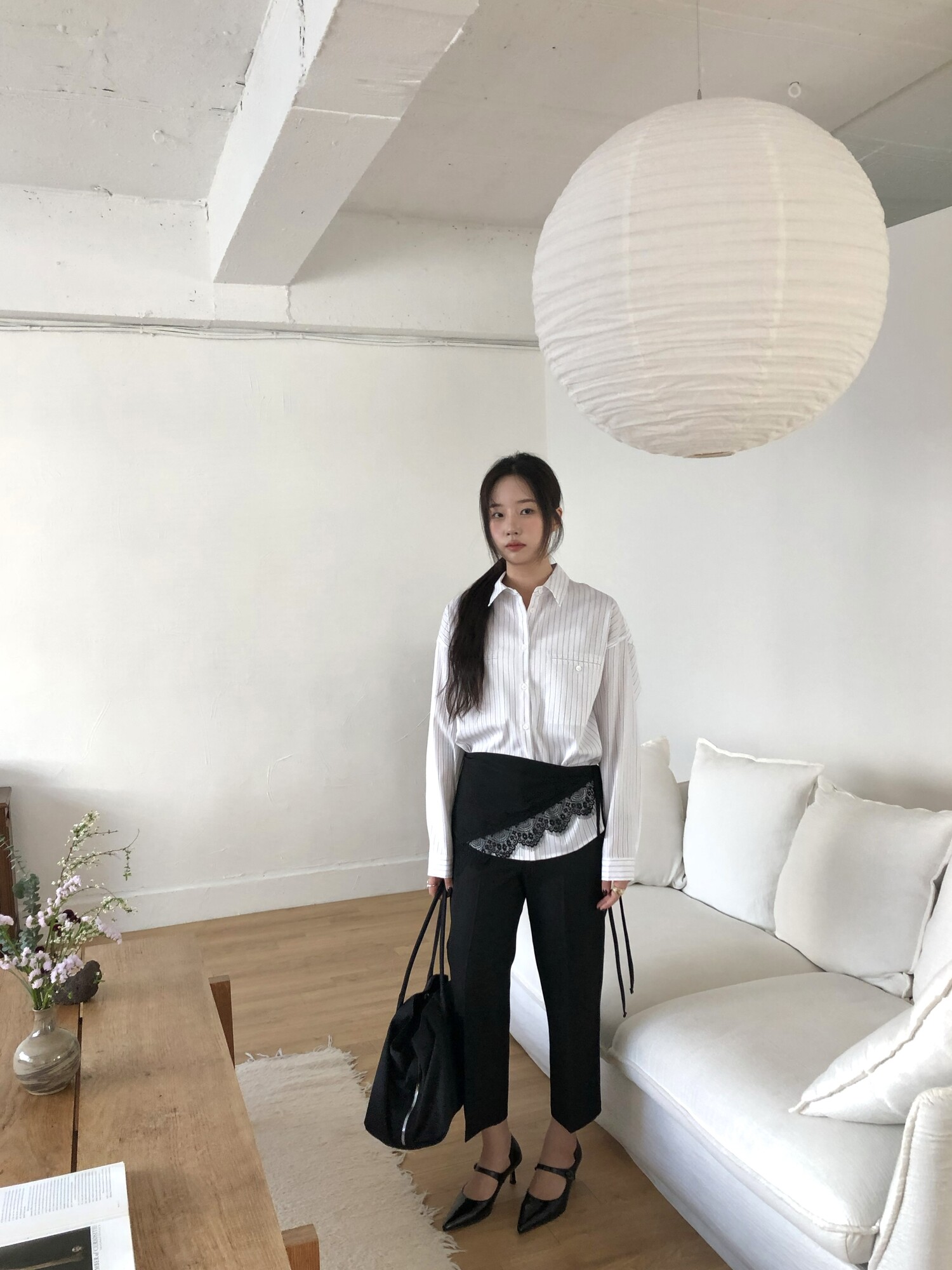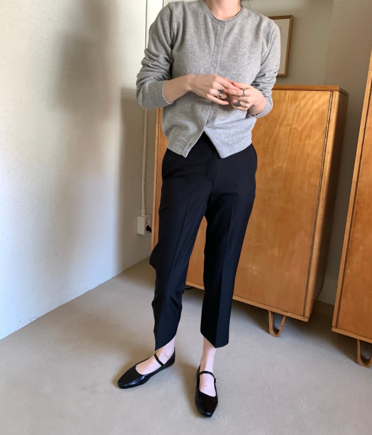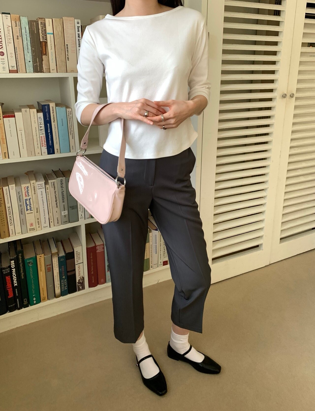 -툭 떨어지는 슬랙스 원단으로 붙지 않고 슬림한 핏 연출
