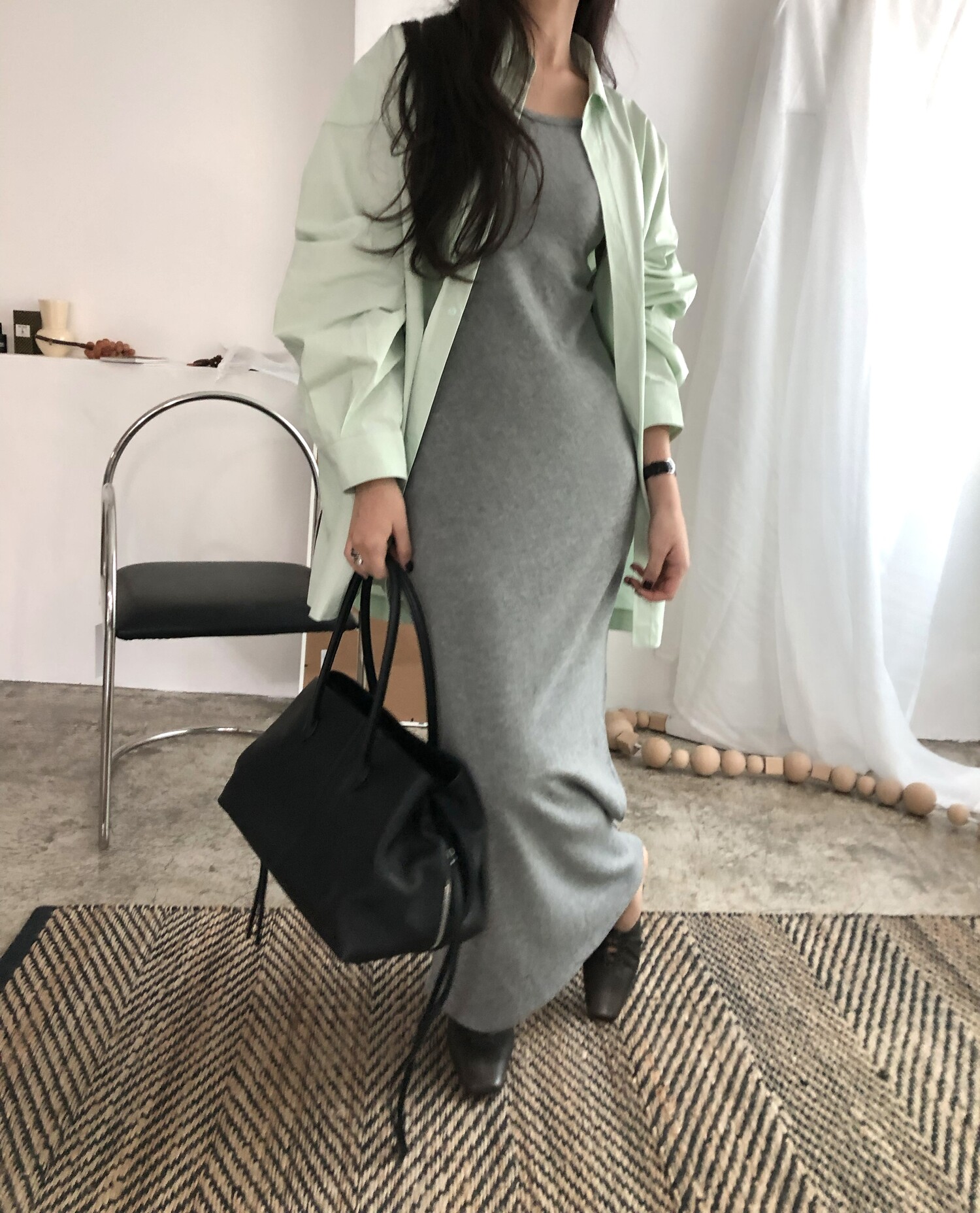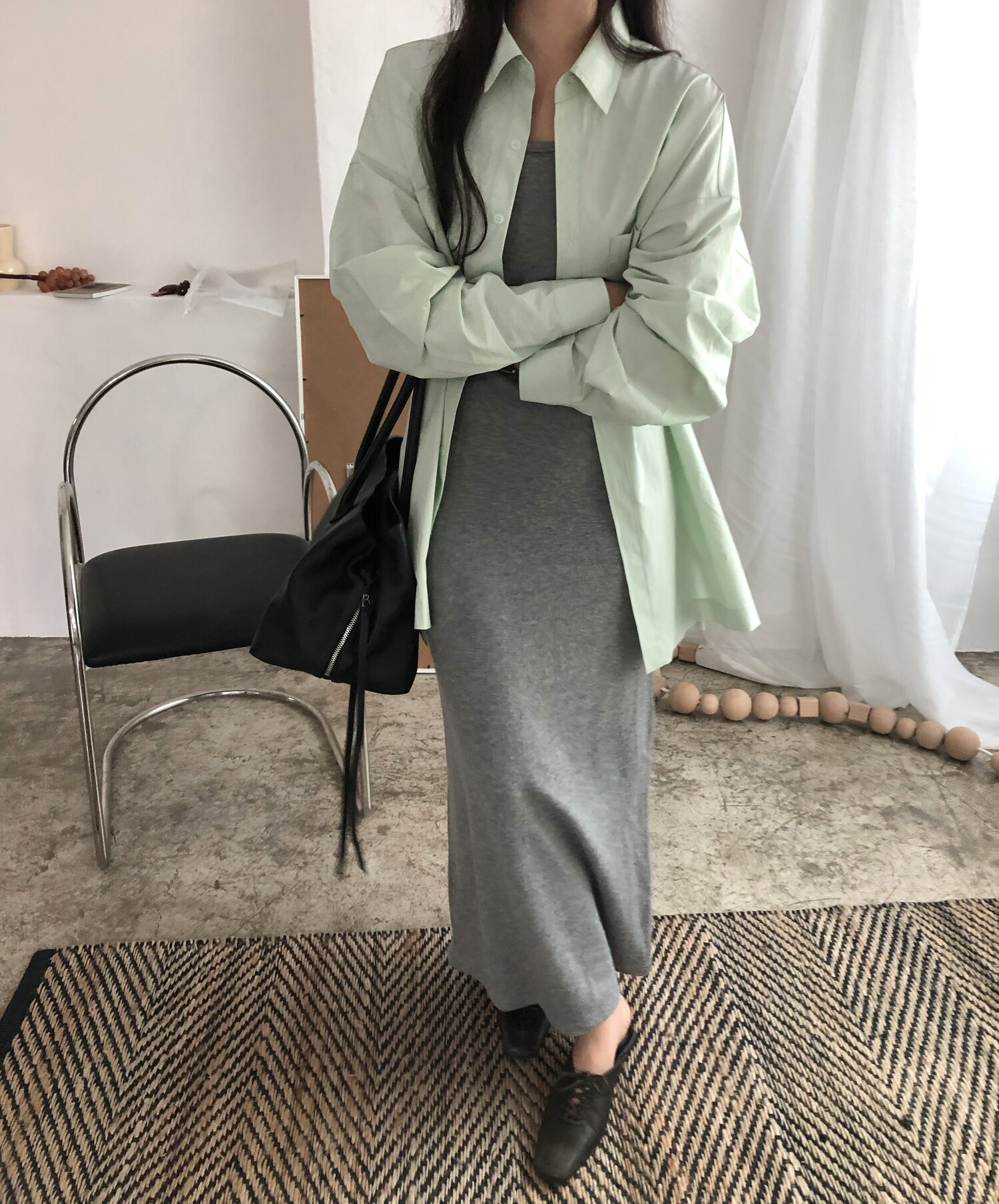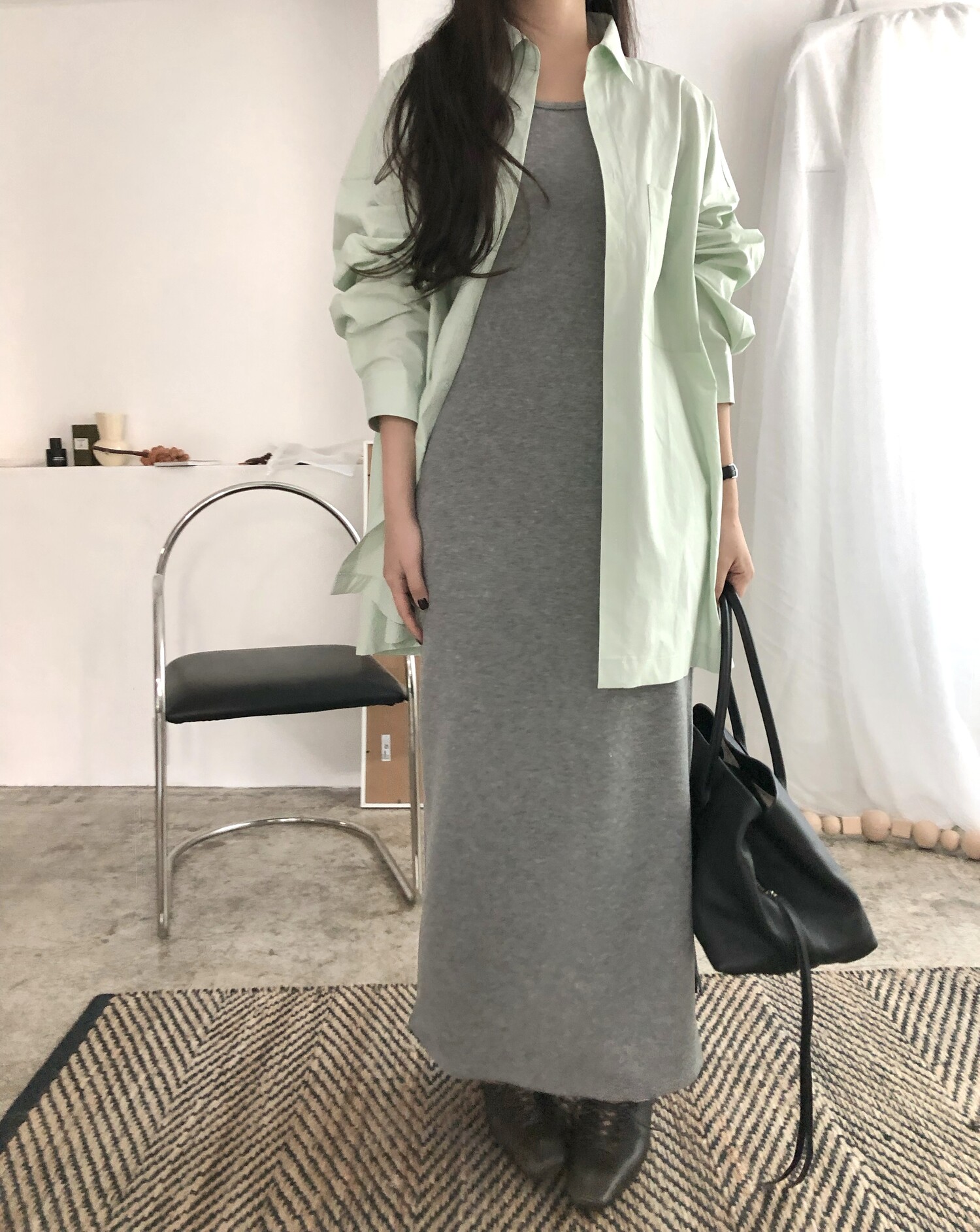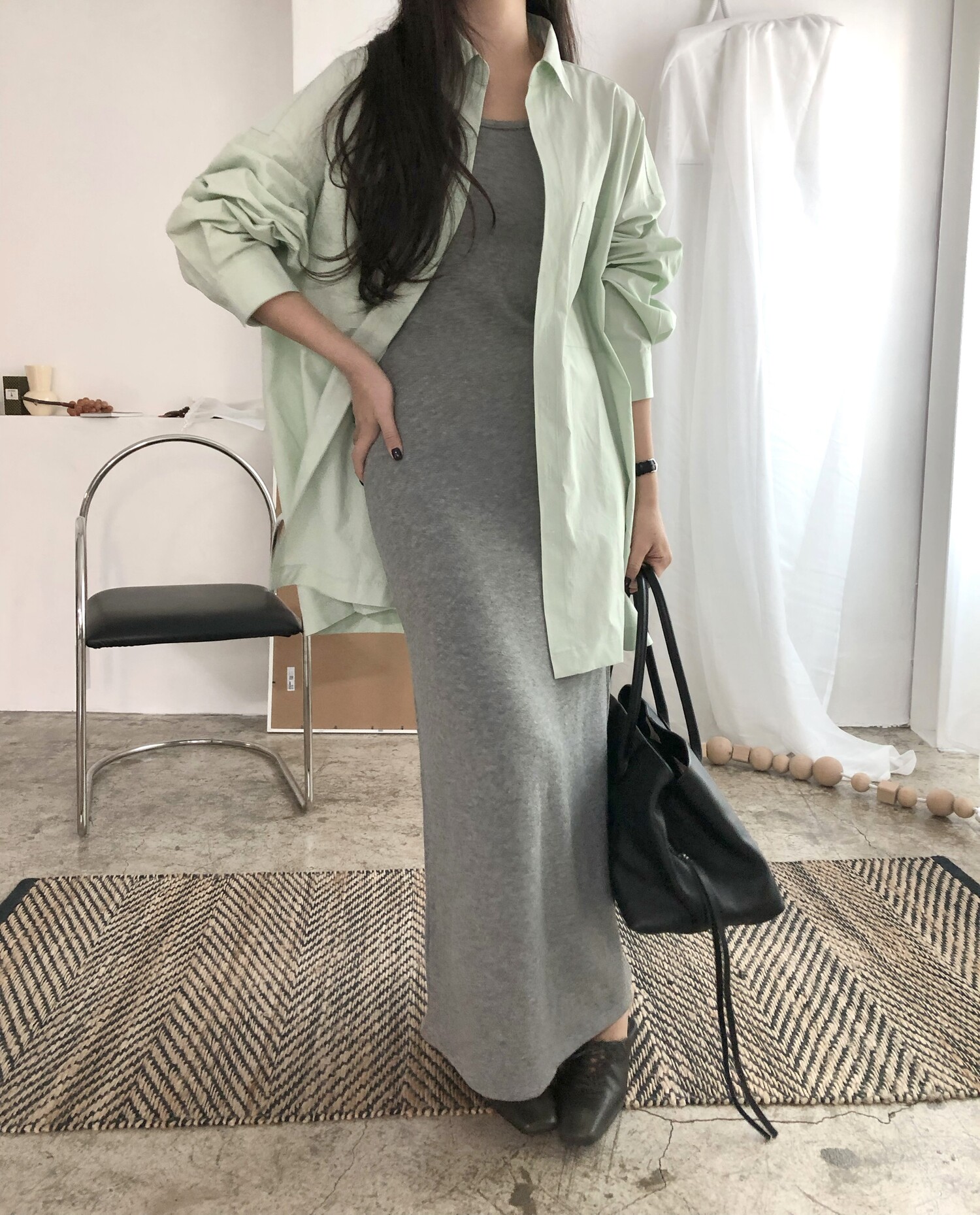 잘 만나기 힘든 슬림해보이면서도 고급진 소재감에 심플한 디자인의 나시 원피스라니 이거 꼭 소장하셨으면 하는 바람을 담아 사심가득 촬영해보았어요!