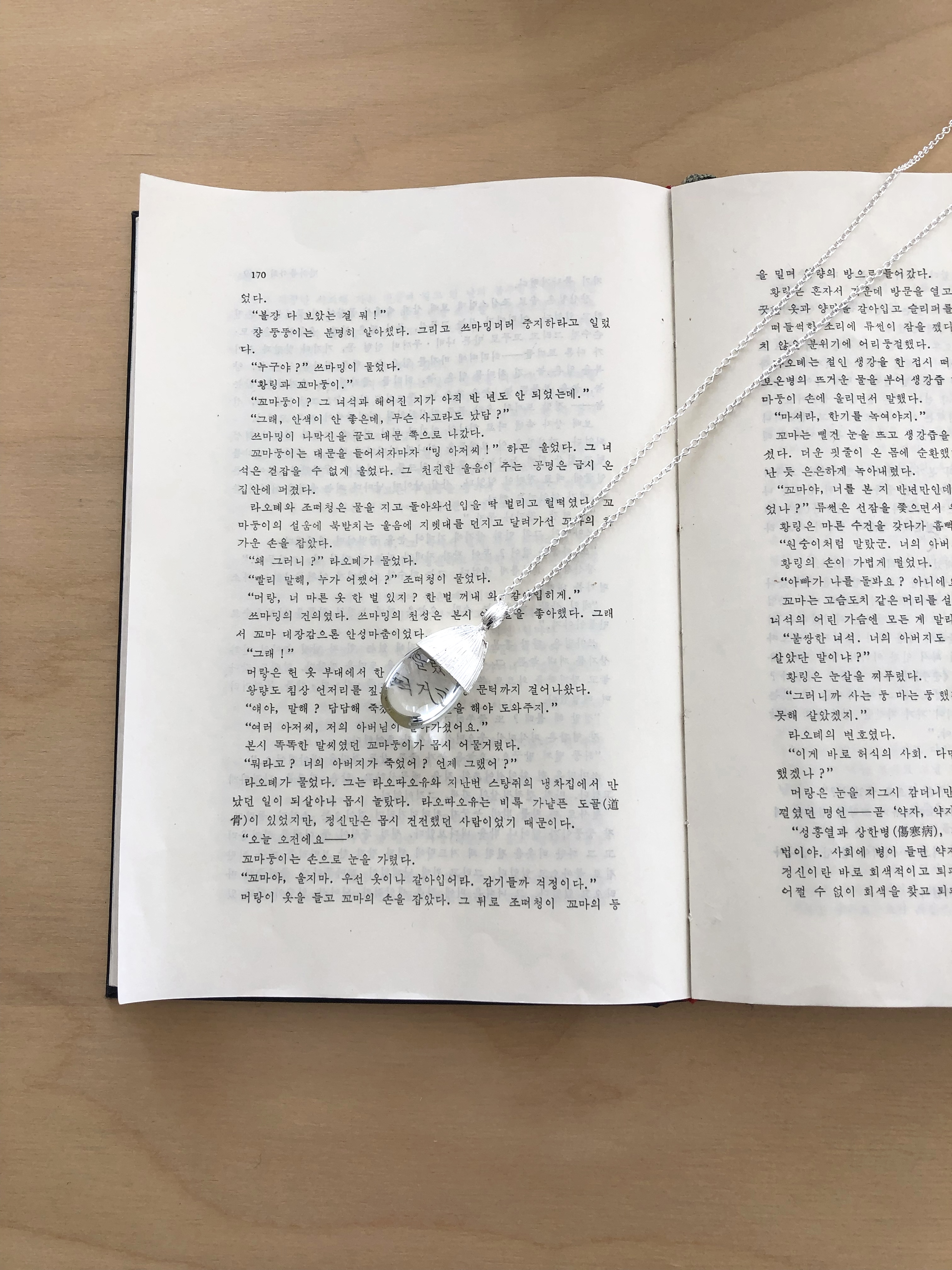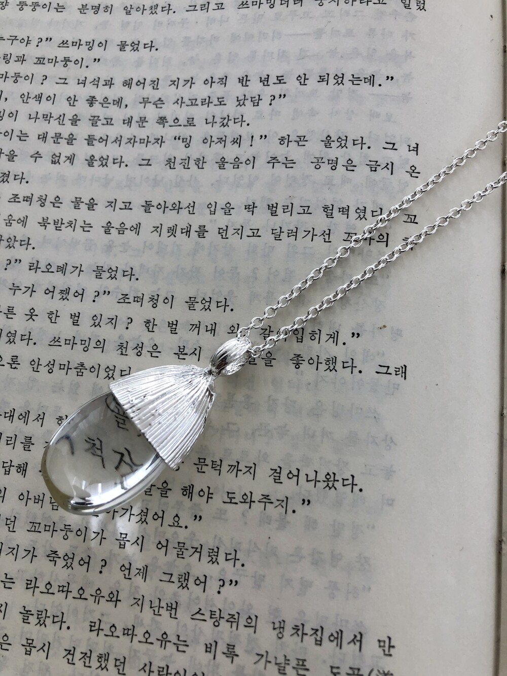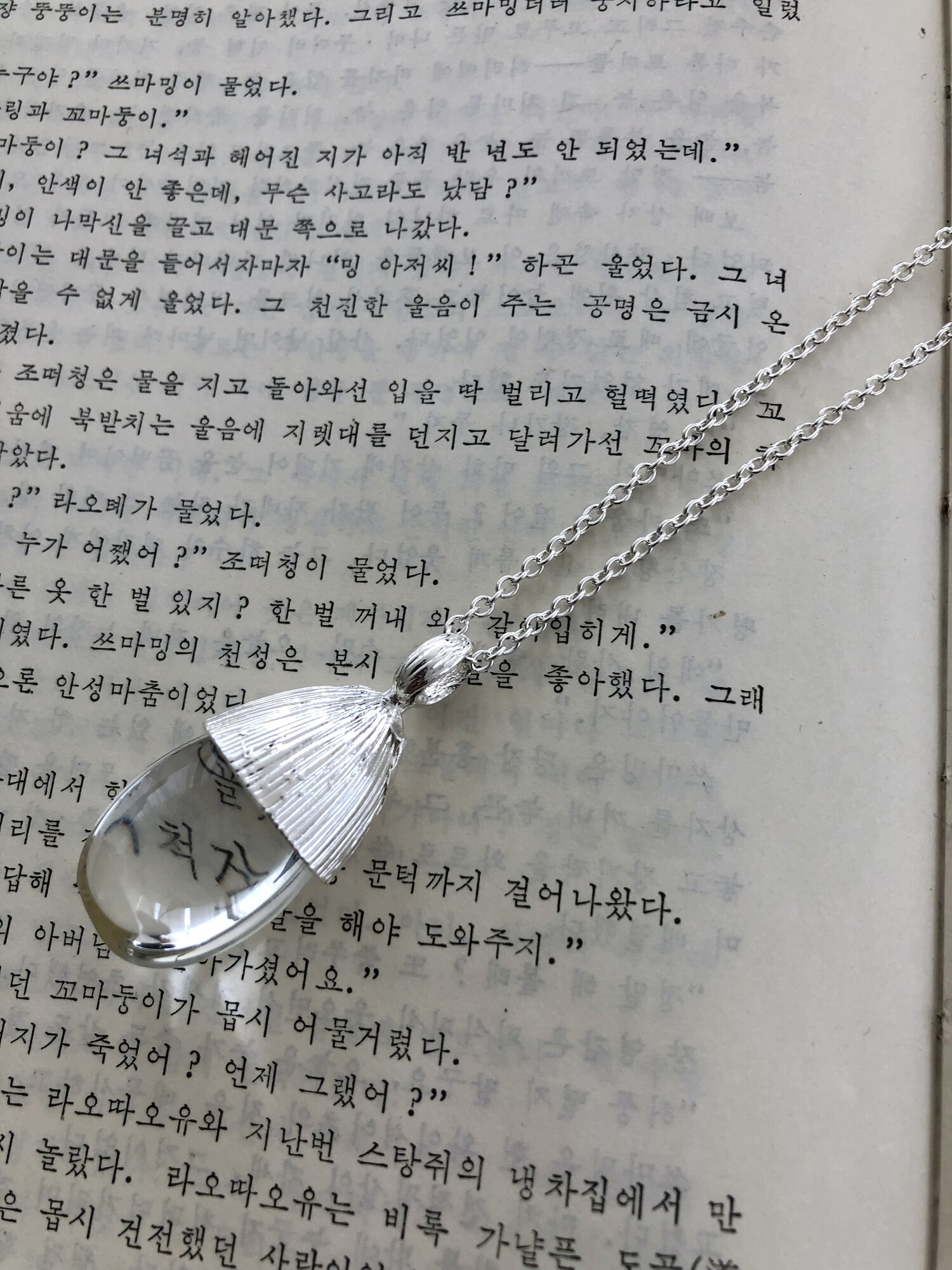 Grain acrylic long necklace-silver